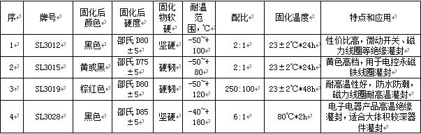 世林的微動開關(guān)用灌封膠,有這么幾種產(chǎn)品,主要是在耐溫等級有區(qū)別,當然灌封膠的顏色,配比這些都可以做一些參考,包括施膠后的固化工藝要求。具體見下表: