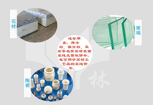 可用于石材與石材、石材與玻璃的復(fù)合、石材工業(yè)中用來(lái)補(bǔ)強(qiáng)、填補(bǔ)具有多孔及表面的裂紋、小孔洞、砂眼、螞蟻路以及凸凹不平的各種天然石材和混凝土、提高表面質(zhì)量、也可用于玻璃紗網(wǎng)加強(qiáng)易碎石板,提高成品率。