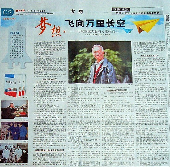 株洲日報對高溫密封膠專家張向宇教授專題報道