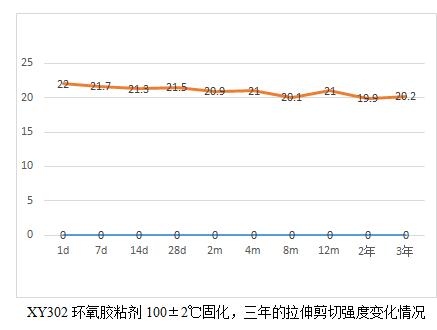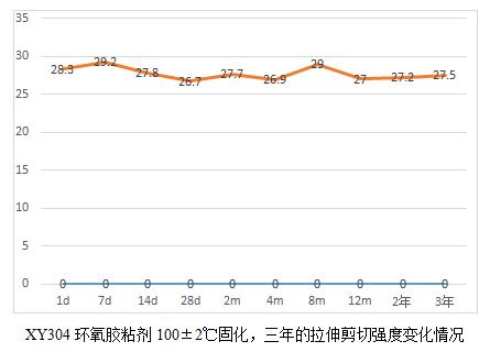 XY304環(huán)氧膠粘劑的耐老化有19.6年的實(shí)測(cè)數(shù)據(jù)。鑒于現(xiàn)在軍工用膠粘劑品種有新增且部分原材料供貨廠家也發(fā)生了變化,為了真實(shí)了解這些材料的耐老化情況,我們將公司的環(huán)氧類型的膠粘劑產(chǎn)品做了一個(gè)25年老化的計(jì)劃,并于2018年元月開(kāi)始,預(yù)計(jì)整個(gè)試驗(yàn)到2043年結(jié)束。