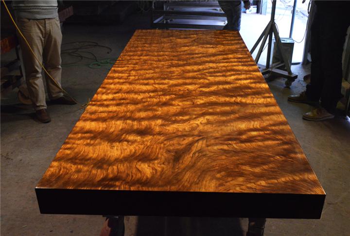 實木大板,是近幾年漸趨流行的一種商業(yè)和辦公家具,它主要由外國進口的較為名貴的百年老木做成。這些木頭口徑較大,一般少在2000px以上上,從中切出一片10-375px厚的大板,就是實木大板?捎糜谧鲛k公桌、大班臺、主管桌、會議桌以及辦公電腦桌等。主要的材質有巴西花梨、非洲楠木、非洲雞翅木、緬甸金絲柚木、非洲紅花梨、非洲黃花梨、非洲奧坎花梨等。實木大板在成型之前的木材是有許多無規(guī)則的裂縫、蟲洞的,但我們買到的實木大板看不到這些裂縫,這是怎么弄的呢?